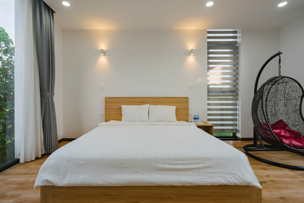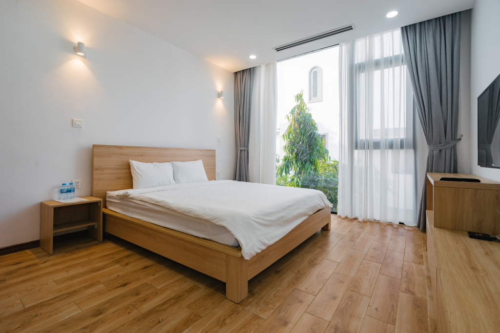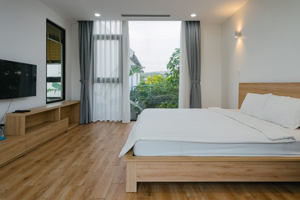 Villa 4 phòng ngủ Flamingo resort Đại Lải (Flmdl401) được thiết kế vuông vắn, đơn giản nhưng vô cùng hiện đại với sự đầu tư cao trong việc set-up nội thất. Villa chủ yếu được lát bằng gỗ mang lại cảm giác sang trọng nhưng không hề khoa trương, giúp bạn có những phút giây thư giãn, gần gũi như đang ở tại chính ngôi nhà của mình.